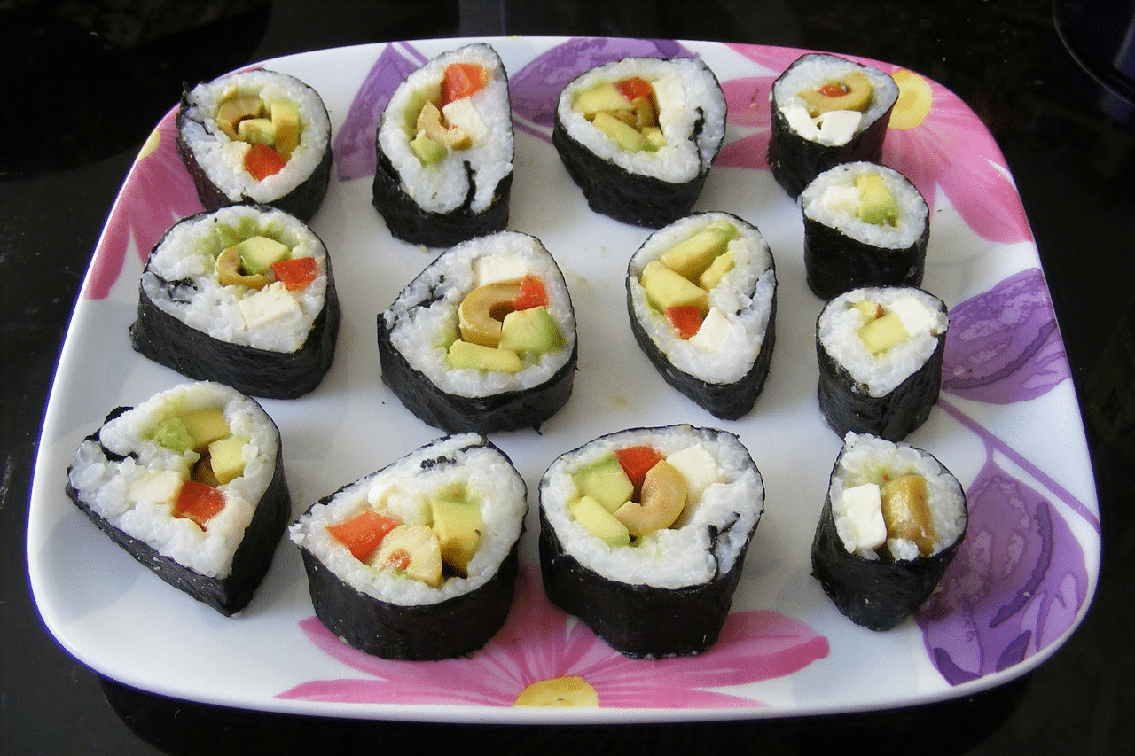 Volte v sushi vhodné náplně, které ocení i vegetariáni a vegani. Může jít třeba o avokádo, tofu, okurku, mrkev či jinou zeleninu, vařené vejce či tepelně upravené žampiony. Jde o tzv. Maki sushi